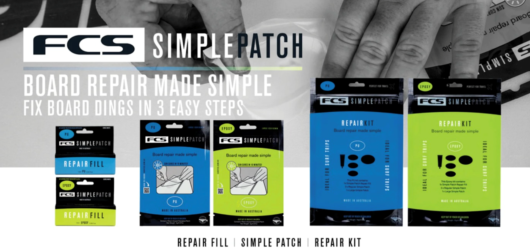Simple Patch is a revolutionary resin-infused 3oz fiberglass patch that can be easily applied to create a smooth finished, waterproof, high-strength permanent repair in minutes. No more mixing resins, no more sticky fingers, and no more endless sanding to get smooth, just simply peel and stick!